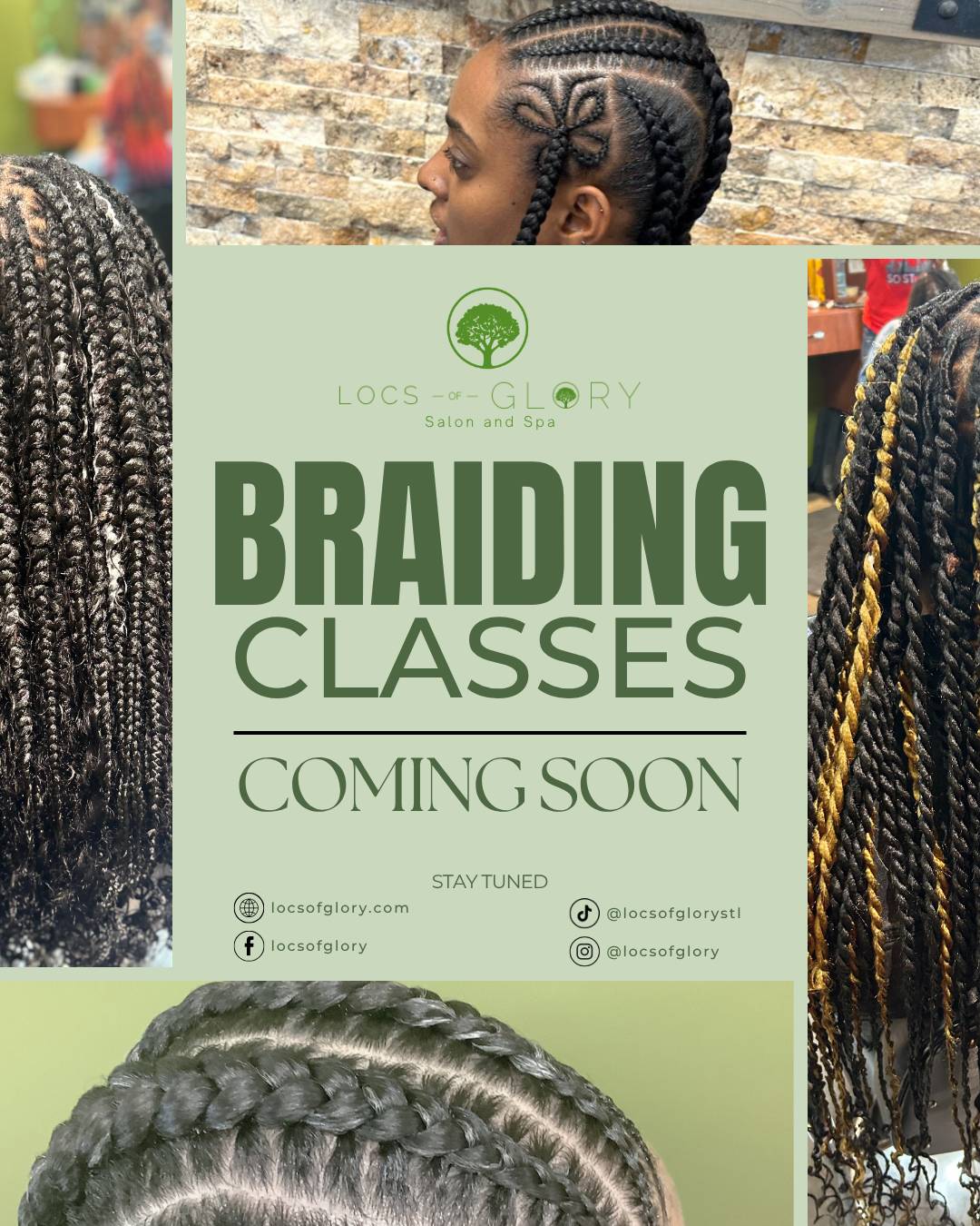 Ready to level up your skills or start a new hustle? We’re excited to announce that braiding classes are coming soon to Locs of Glory! Whether you’re a beginner looking to learn the basics or a stylist wanting to refine your technique, our classes will offer hands-on training, expert guidance, and the confidence to create with purpose.