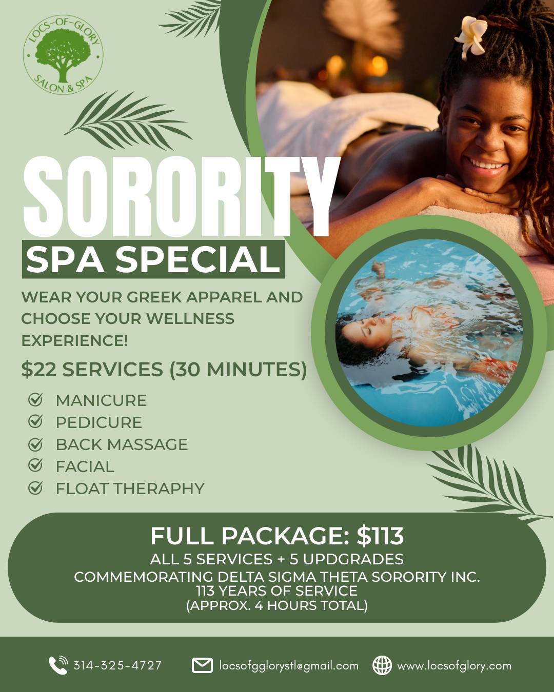 In honor of 113 years of Delta Sigma Theta Sorority, Inc., we’re offering exclusive $22 wellness experiences for all sorors who wear their Greek apparel!