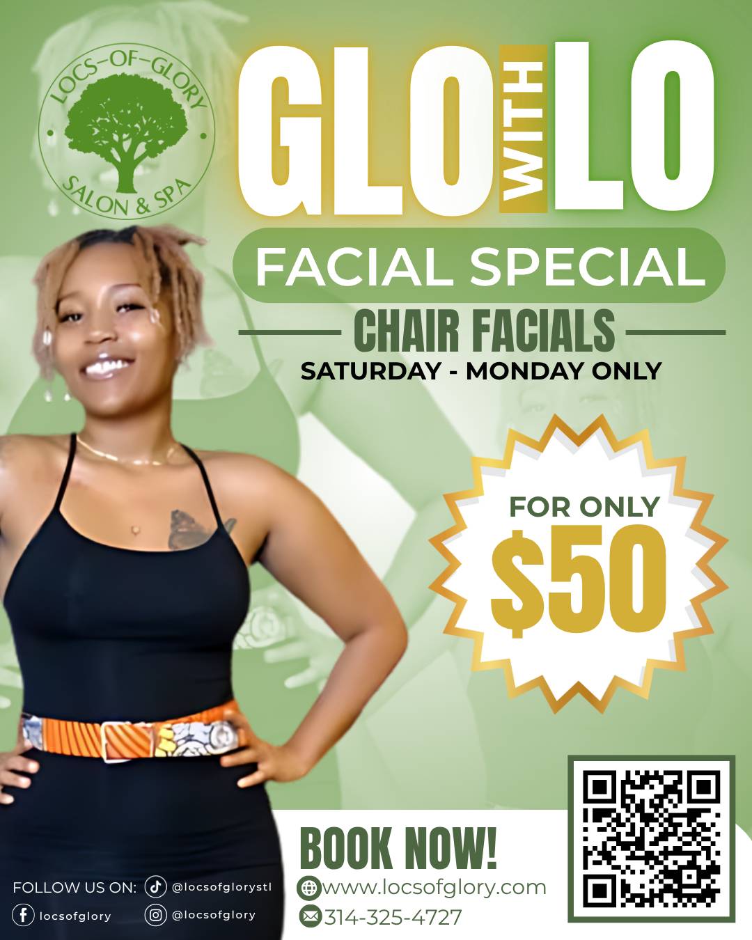 Glow with Lo is BACK! ✨ We’re kicking off November with your favorite — The Glow with Lo Chair Facial Special!