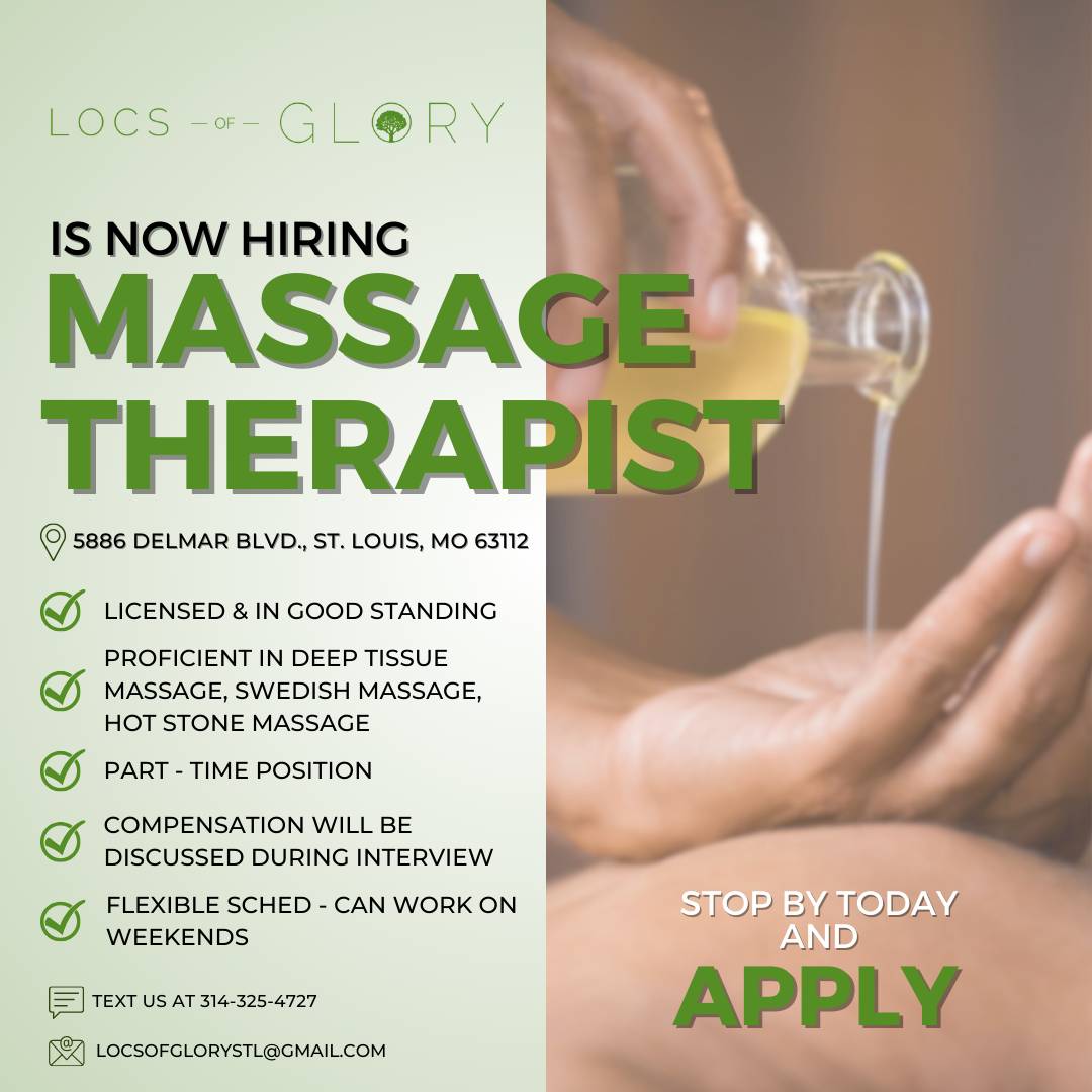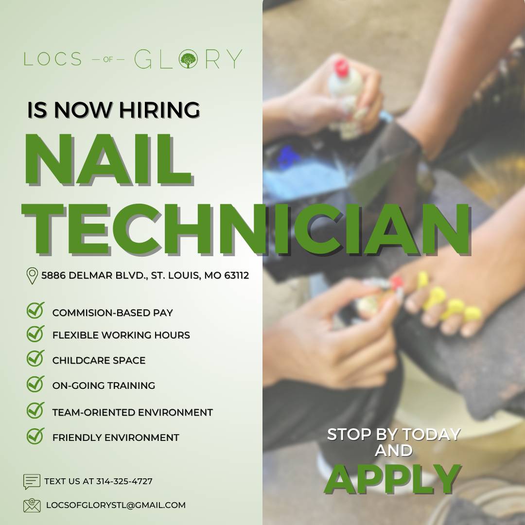 If you’re passionate about beauty, wellness, and uplifting your community, Locs of Glory wants you on our team! We're currently seeking skilled and motivated individuals to join us as Massage Therapists, Nail Technicians, and Receptionists. Whether you’re an experienced professional or just stepping into the industry, we offer a supportive space where your talent can shine.